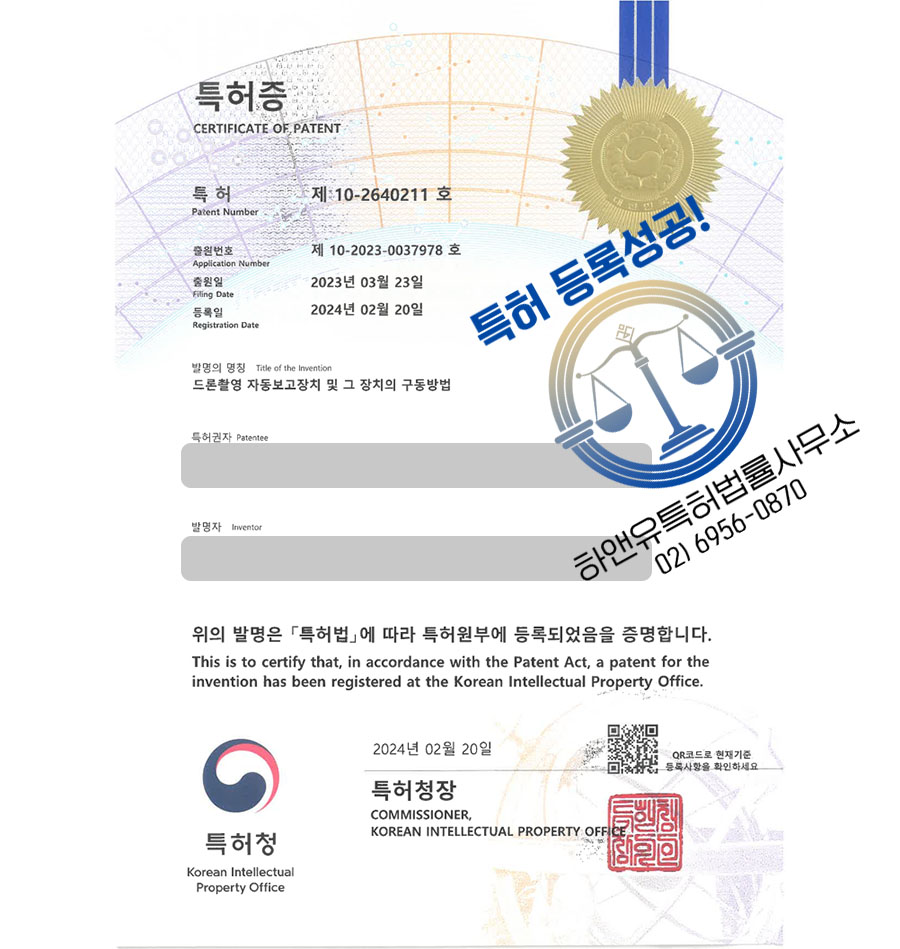 ▼ 하앤유특허법률사무소 등록사례 보러가기 클릭 ▼