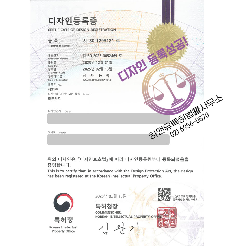 디자인 등록이 완료되었습니다.
