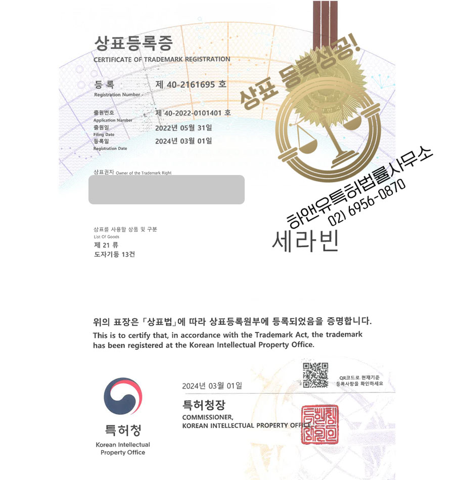 하앤유 상표 등록 성공! 도자기쇼핑몰, 그릇플랫폼, 식기브랜드 상표권 디자인 특허 출원 ”세라빈” 상표