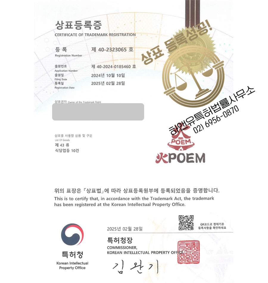 서울 에서 접수된 ”화포엠 (火POEM)” 는 유사 상표 검색 및 식별력 검토를 거쳐