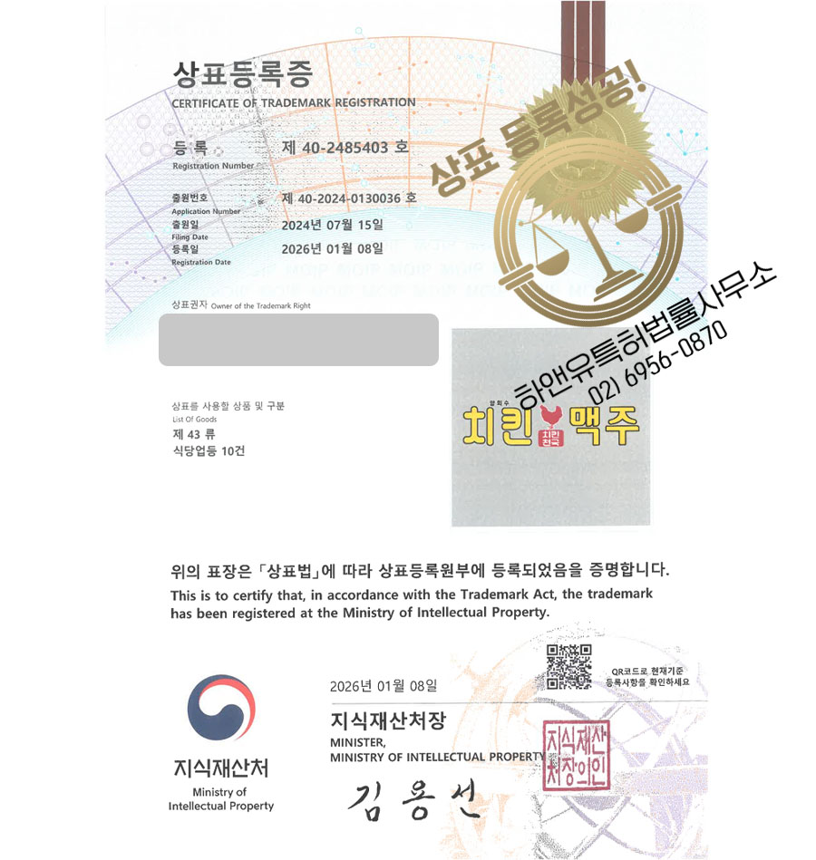 하앤유 상표 등록 성공! 치맥체인점, 맥주집, 노포술집 상표권 디자인 특허 출원 ”양회수 치킨천국맥주” 상표