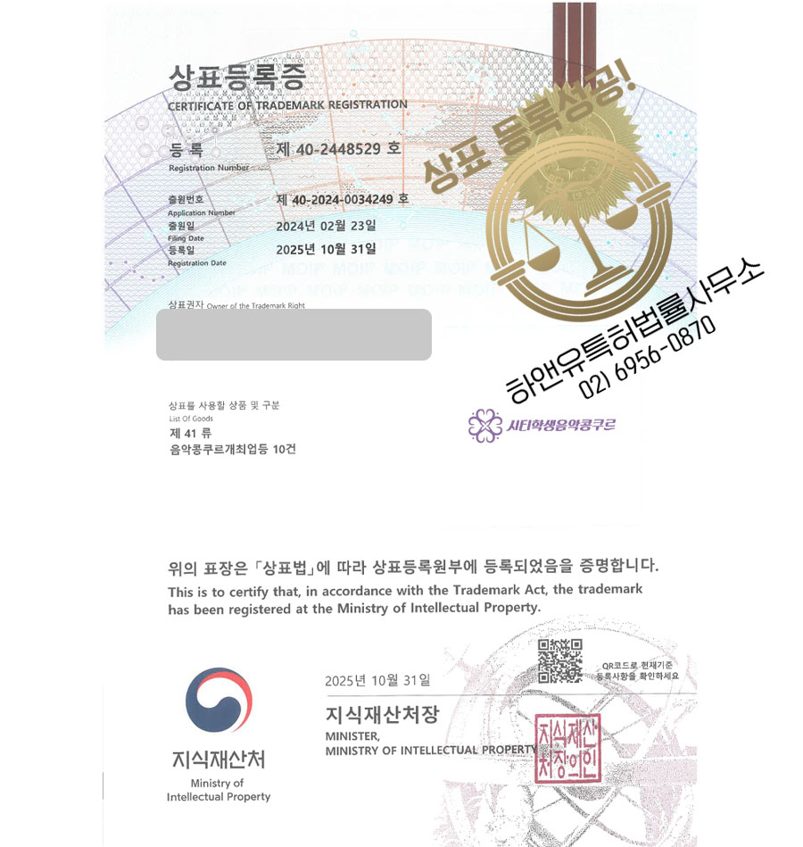 하앤유 상표 등록 성공! 콘테스트, 공모전, 콘서트 상표권 디자인 특허 출원 ”시티학생음악콩쿠르” 상표