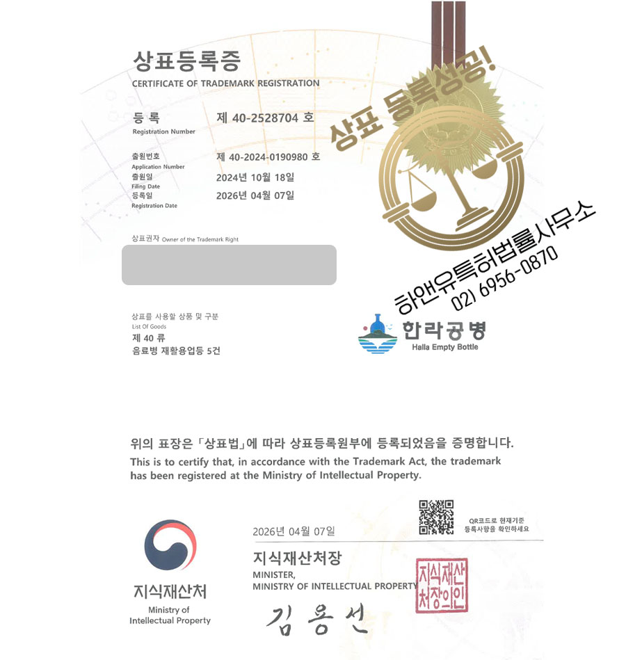 환경기업, 재활용업체, 공병수거업체 등 40류에 대한 상표출원 의뢰가 하앤유로 접수되었고,