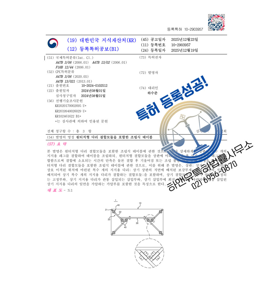 ”원터치형 다리 결합모듈을 포함한 조립식 테이블”