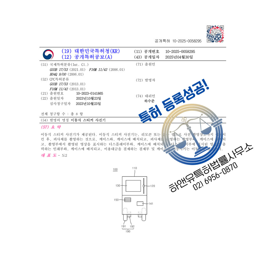 ”이동식 스티커 사진기”에 대한 특허출원 의뢰가 하앤유로 접수되었고, 해당 발명을 검토한 결과,