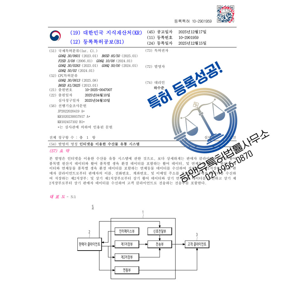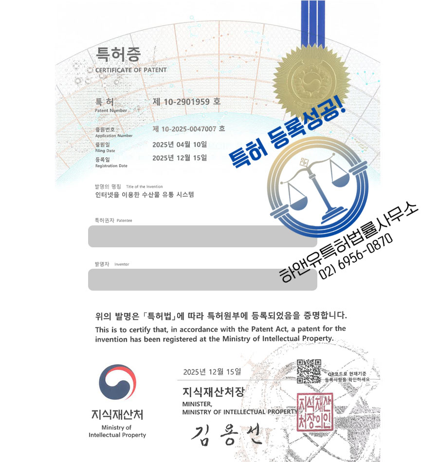하앤유 특허 등록 성공사례 II ”인터넷을 이용한 수산물 유통 시스템” 특허권 등록 어플, 앱, 원산지 정보 특허 출원