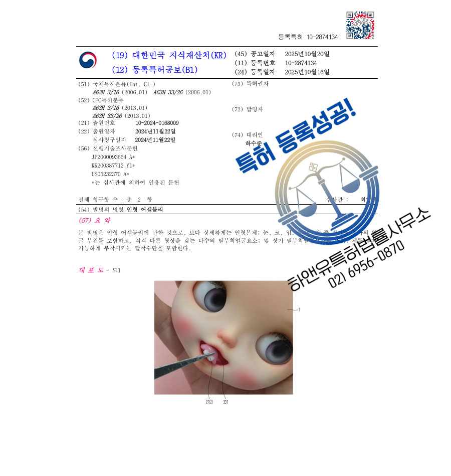 서울시 에서 진행된 ”인형 어셈블리” 특허출원은,