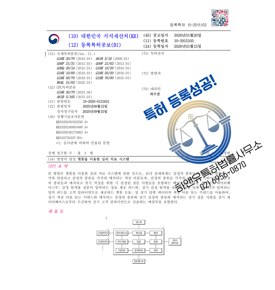 본 등록사례는 인공지능과 헬스케어 기술이 결합된 고난도 특허에 대해