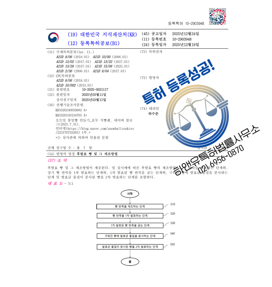 하앤유 특허 등록 성공사례 II ”후발효 빵 및 그 제조방법” 특허권 등록 식품, 레시피, 음식, 호밀빵 특허 출원