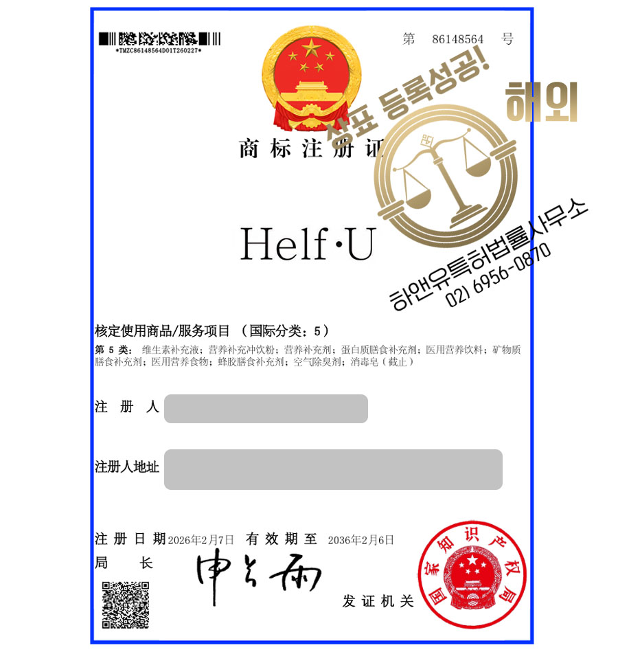 하앤유 특허법률사무소의 면밀한 컨설팅을 통한 전략적인 해외 상표출원이 진행되었으며,