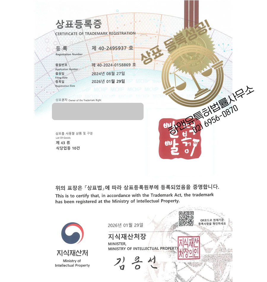 하앤유 상표 등록 성공! 분식체인, 떡볶이브랜드, 떡볶이가맹점 상표권 디자인 특허 출원 ”빨빨떡볶이” 상표