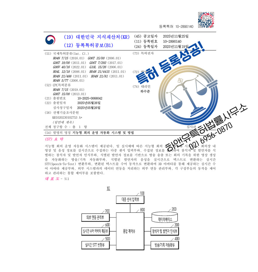”지능형 회의 운영 자동화 시스템 및 방법” 특허출원은,
