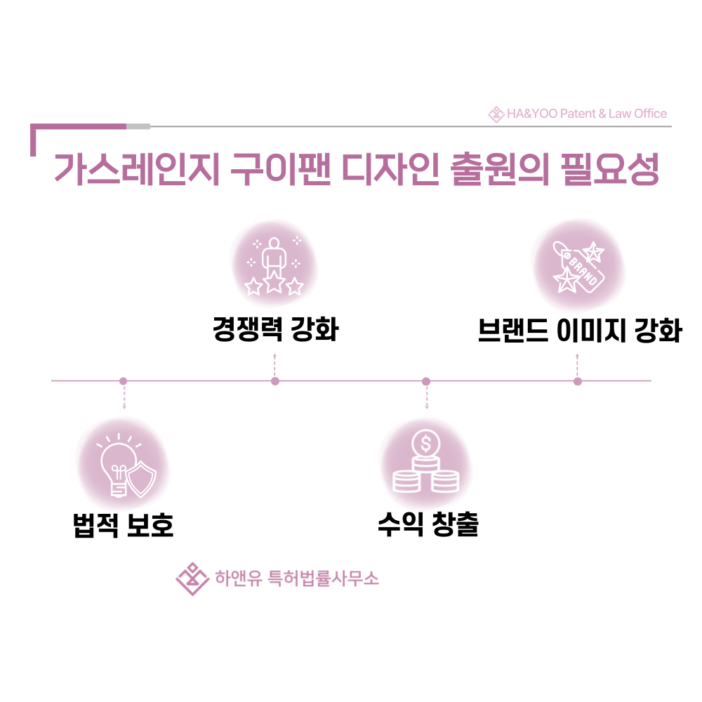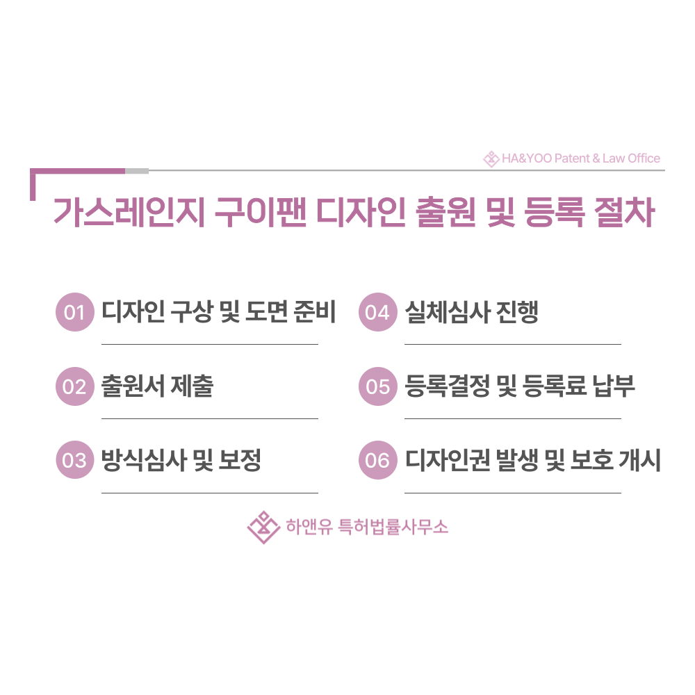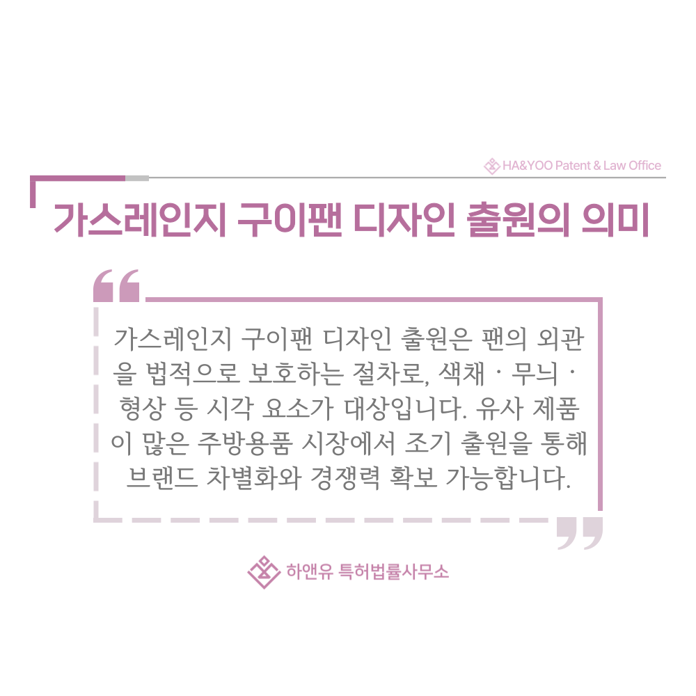 가스레인지 구이팬 디자인 출원은 제품의 외관을 법적으로 보호받기 위한 가장 직접적인 수단입니다.