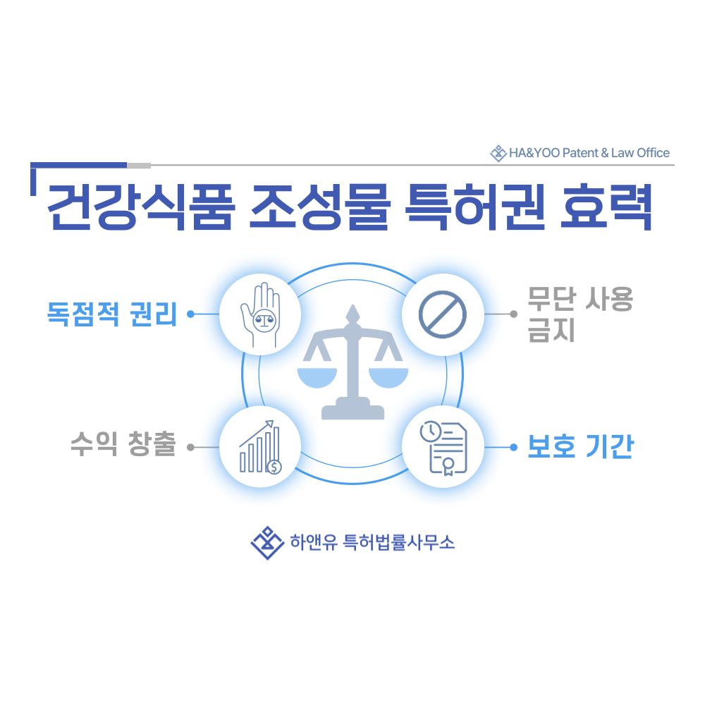 따라서 타인이 유사한 성분 조합이나 동일한 제조 방법을 사용하여 제품을 생산·판매할 경우, 법적으로 제재할 수 있습니다.