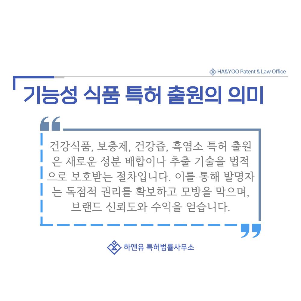#기능성식품 #건강식품 #보충제 #건강즙 #흑염소 #특허 #특허출원 #특허등록 #특허권 #하앤유 #특허변리사 #PatentRegistration #PatentApplication