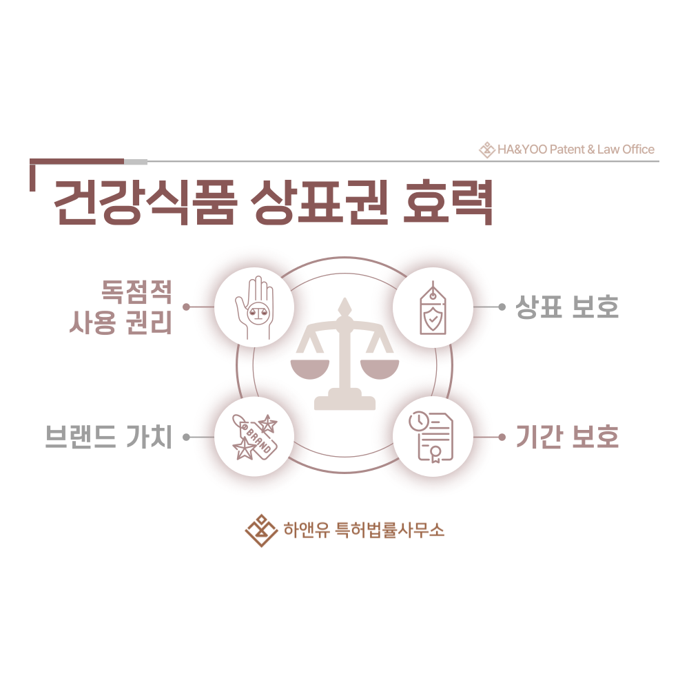 건강식품 상표권이 등록되면 해당 상표를 지정상품 범위 안에서 독점적으로 사용할 수 있는 권리가 생깁니다.