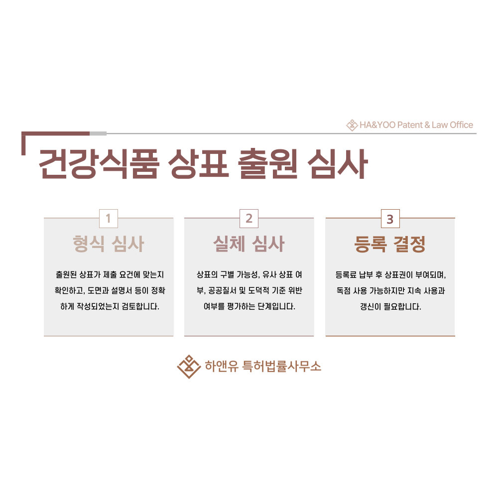 #건강식품 #상표 #상표출원 #상표등록 #상표특허 #상표권 #상표권출원 #상표권등록 #상표권특허 #방법 #요건 #절차 #효력 #하앤유특허법률사무소 #TrademarkApplication #TrademarkRegistration #TrademarkPatent