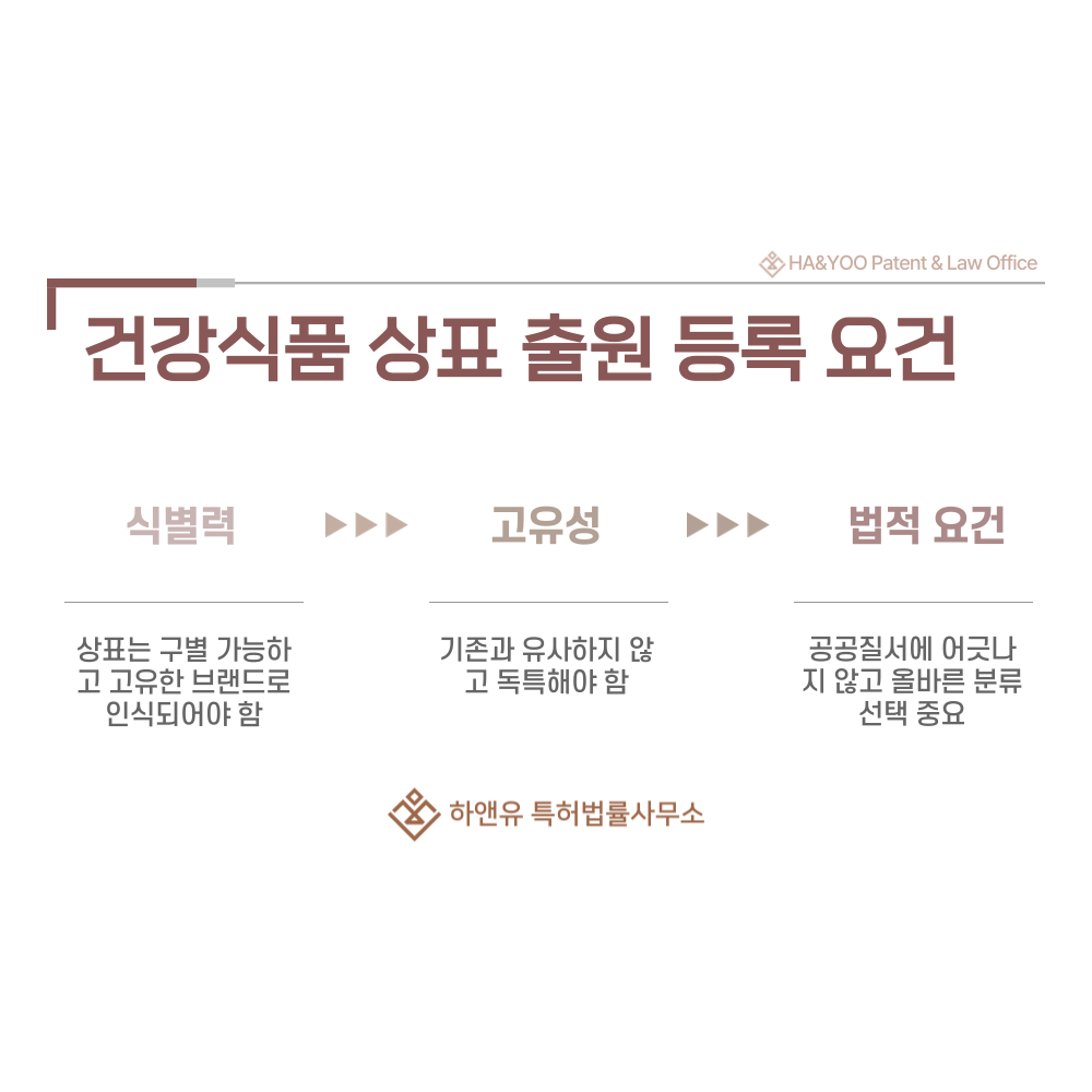 건강식품 상표가 등록되기 위해서는 다른 제품과 구별될 수 있는 식별력이 있어야 합니다.