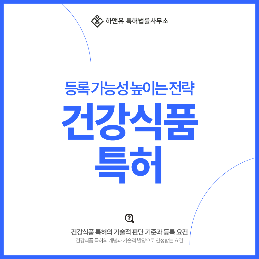 #건강식품특허 #건강기능식품특허 #수치한정 #상호작용효과 #특허명세서작성 #OA대응 #특허청(지식재산처)심사 #기술적진보성 #하앤유특허법률사무소 #특허출원등록