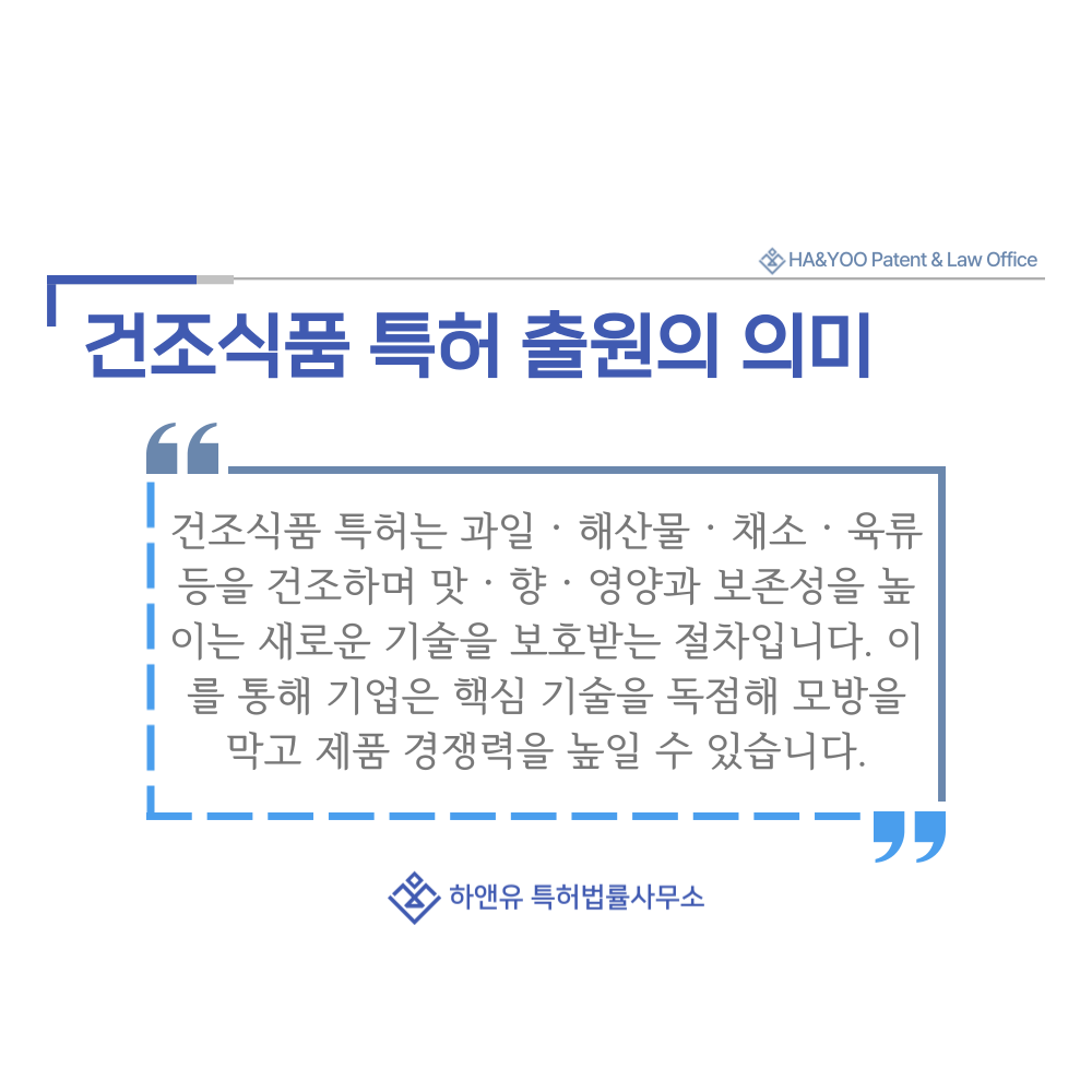 #건조식품 #건조 #과일 #해산물 #채소 #육류 #두부 #분말 #특허 #특허출원 #특허등록 #특허권 #하앤유 #특허변리사 #PatentRegistration #PatentApplication