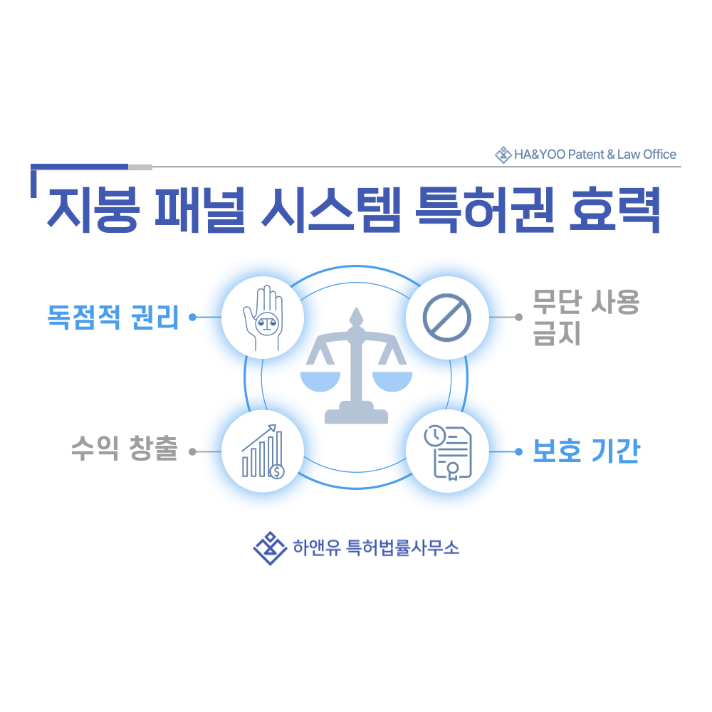 이는 동일하거나 유사한 구조·재질·시공 방식을 타인이 제조·판매·사용하지 못하도록 법적으로 제한할 수 있음을 의미합니다.