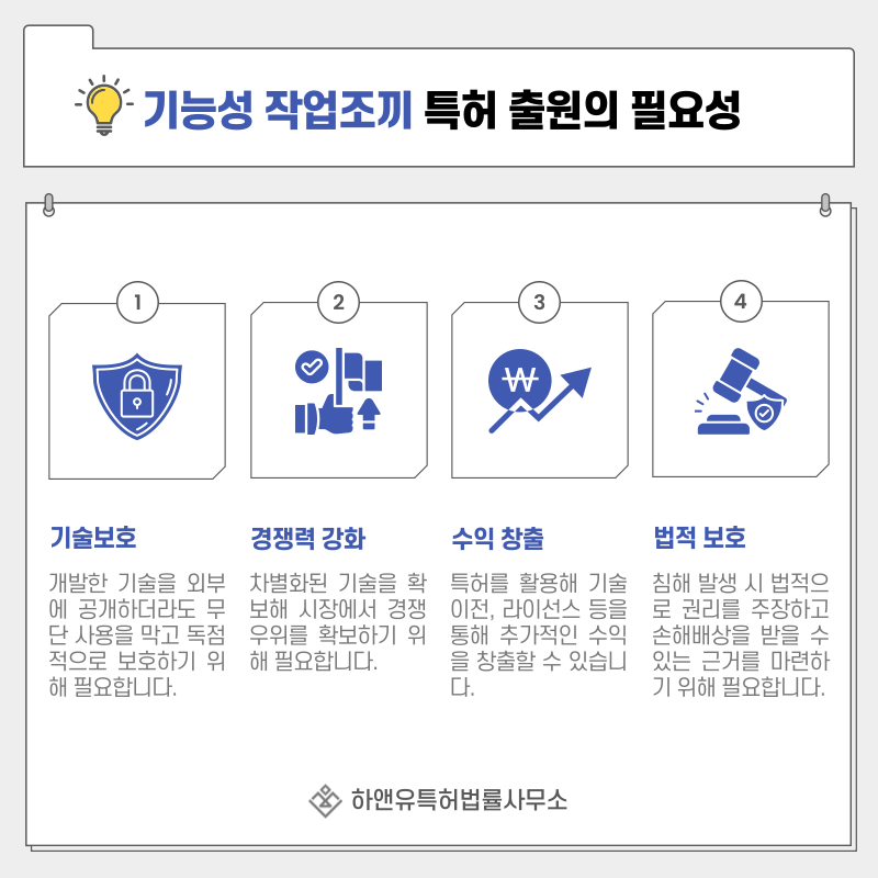 이러한 기술을 특허로 출원하면 단순한 제품이 아닌 기능 구현 방식까지 보호할 수 있어