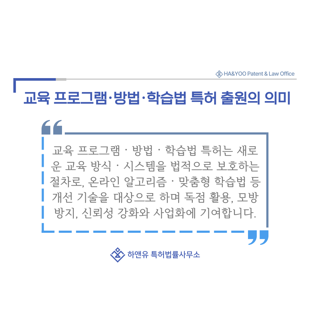 교육 프로그램·방법·학습법 특허 출원은 단순한 교재나 강의 자료가 아닙니다.