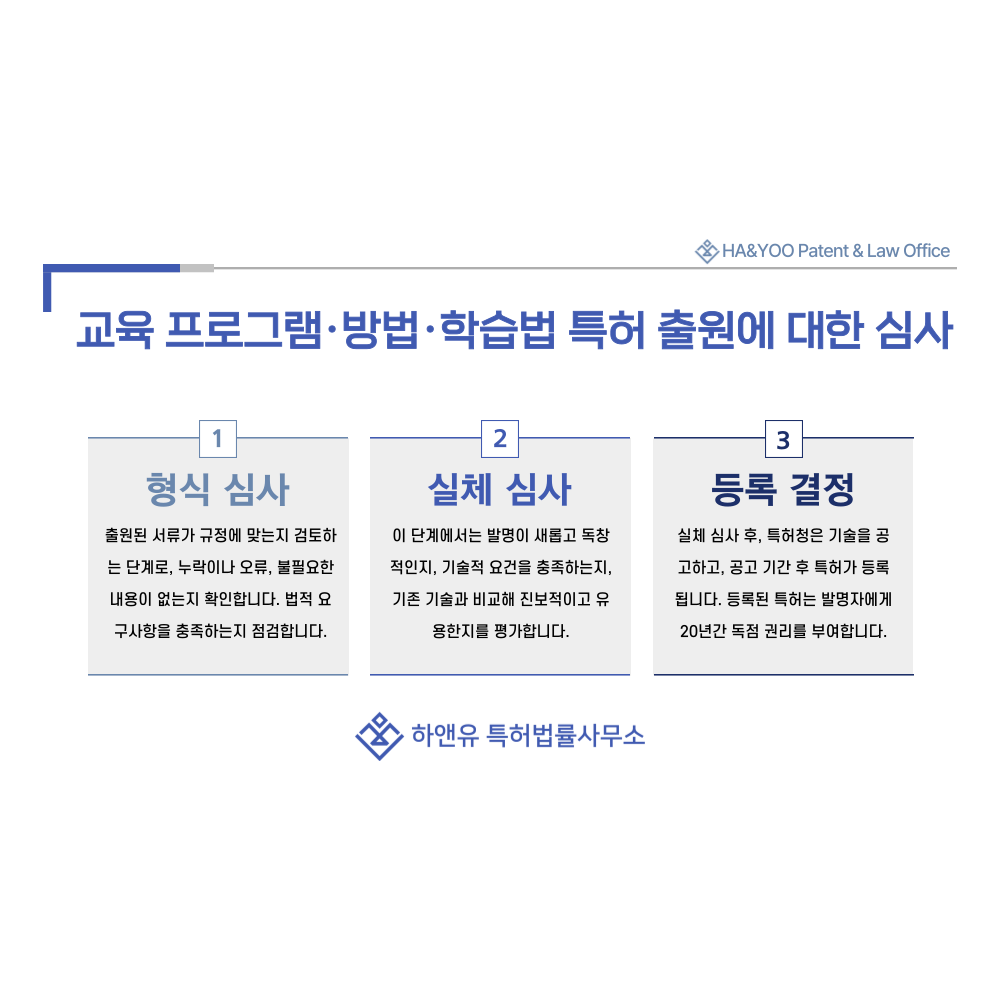 #교육특허 #교육프로그램특허 #교육방법특허 #학습법특허 #특허 #특허출원 #특허등록 #특허권 #하앤유 #특허변리사 #PatentRegistration #PatentApplication