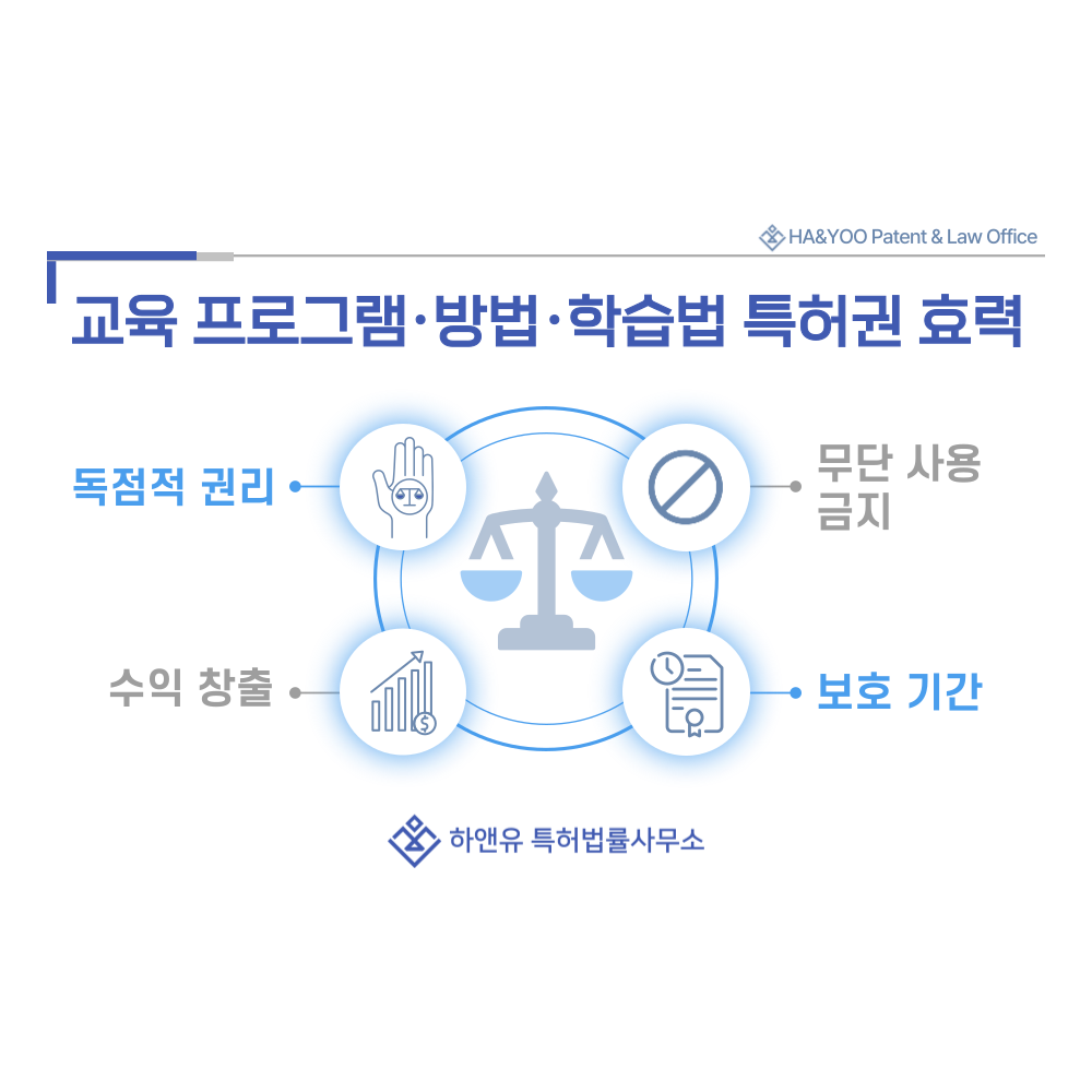 Q4. 교육 프로그램·방법·학습법 특허권을 등록하면 어떤 권리를 보장받을 수 있나요?