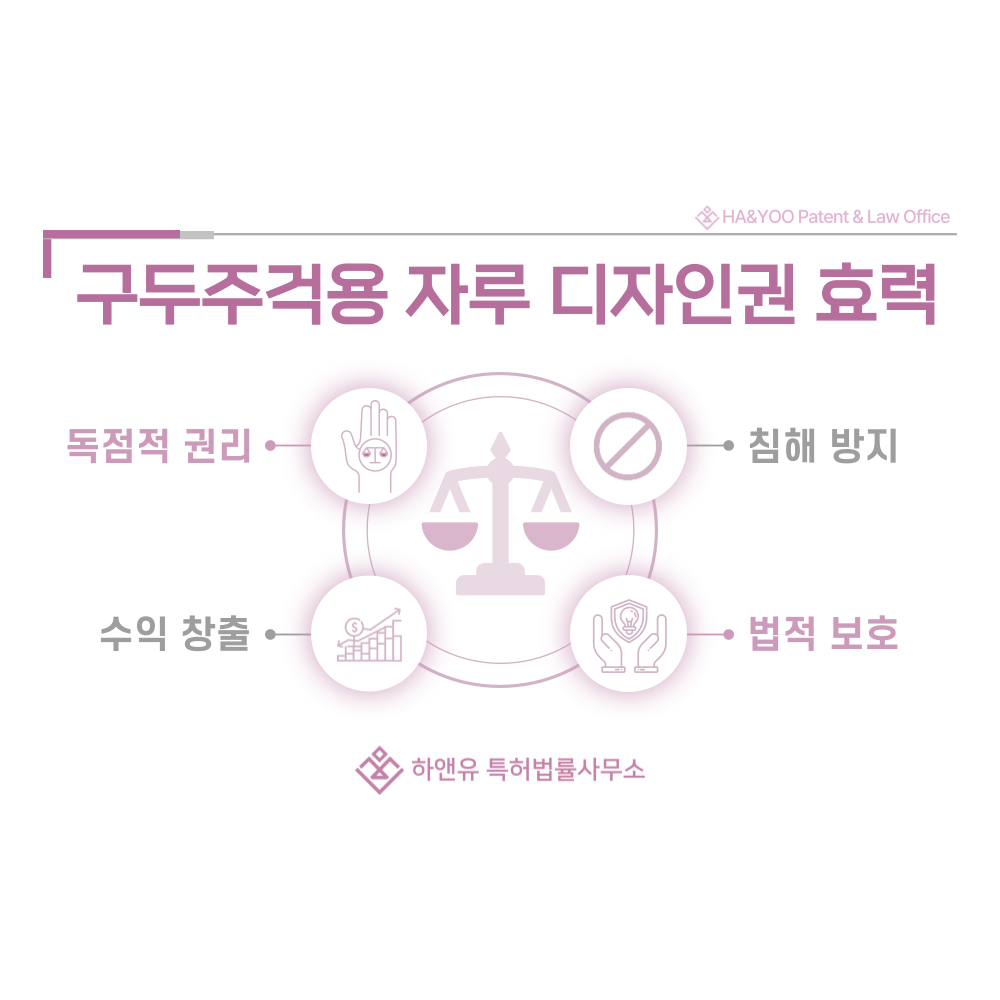 권리자는 등록된 구두주걱용 자루 디자인을 독점적으로 사용할 수 있으며, 타인의 무단 모방이나 유통을 제재할 수 있습니다.