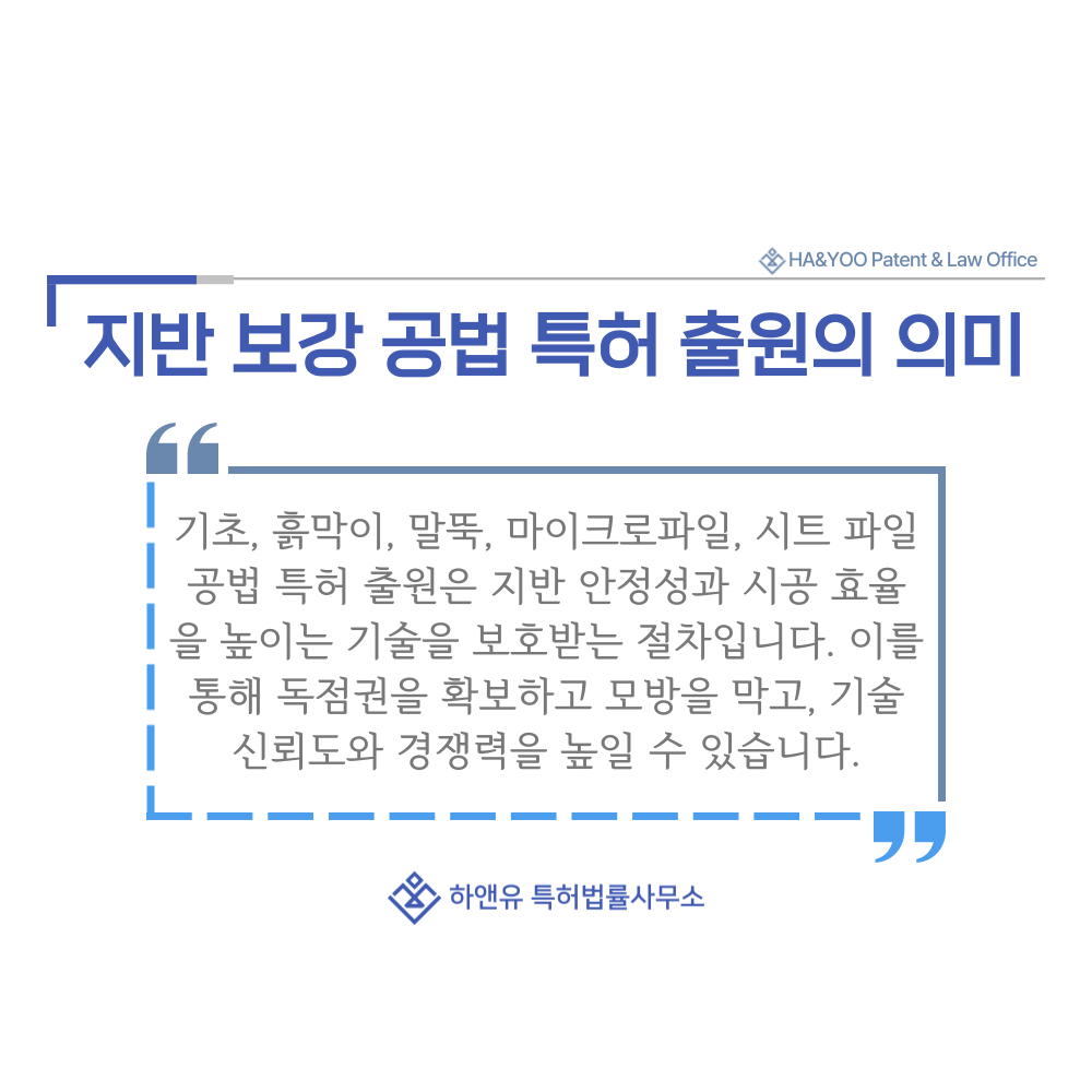 1. 지반 보강 공법, 기초, 흙막이, 말뚝, 마이크로파일, 시트 파일 공법 특허 출원의 의미