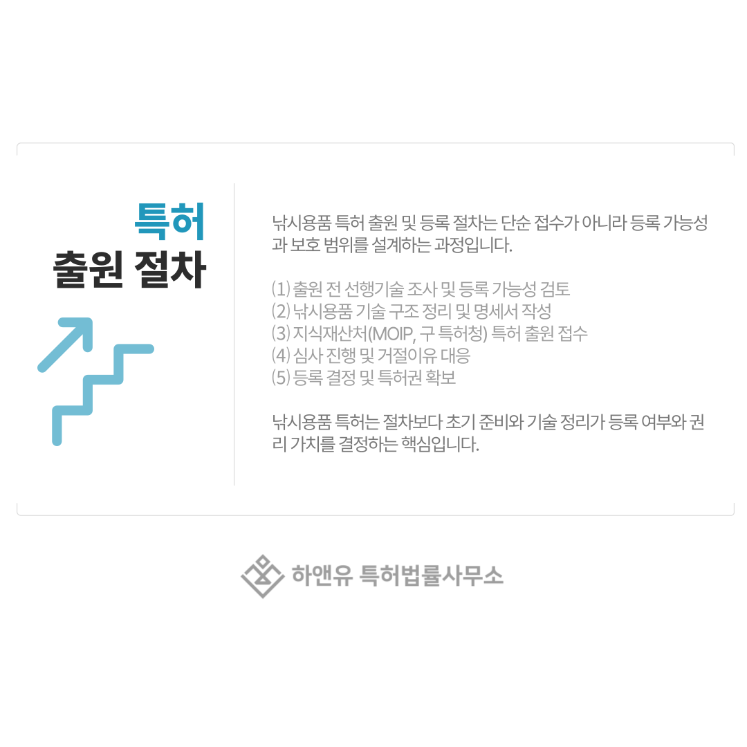 아래 절차를 기준으로 준비하시면 낚시용품 특허의 전체 흐름을 쉽게 이해하실 수 있습니다.