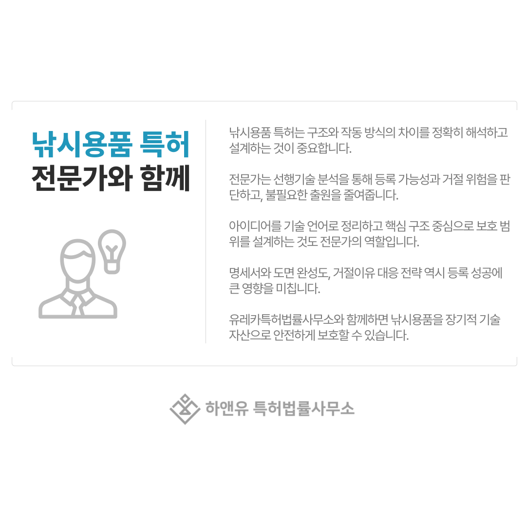 거절 사유를 정확히 이해하고 전략적으로 대응할수록 낚시용품 특허 등록 가능성은 높아집니다.