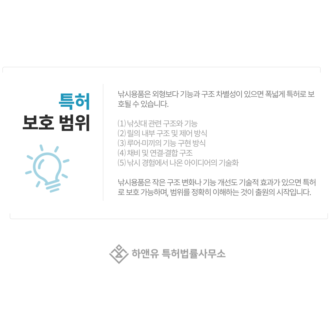 낚시용품을 단순한 상품이 아닌 기술 자산으로 만들기 위해서는 보호 가능한 범위를 정확히 이해하는 것이 출원의 출발점입니다.