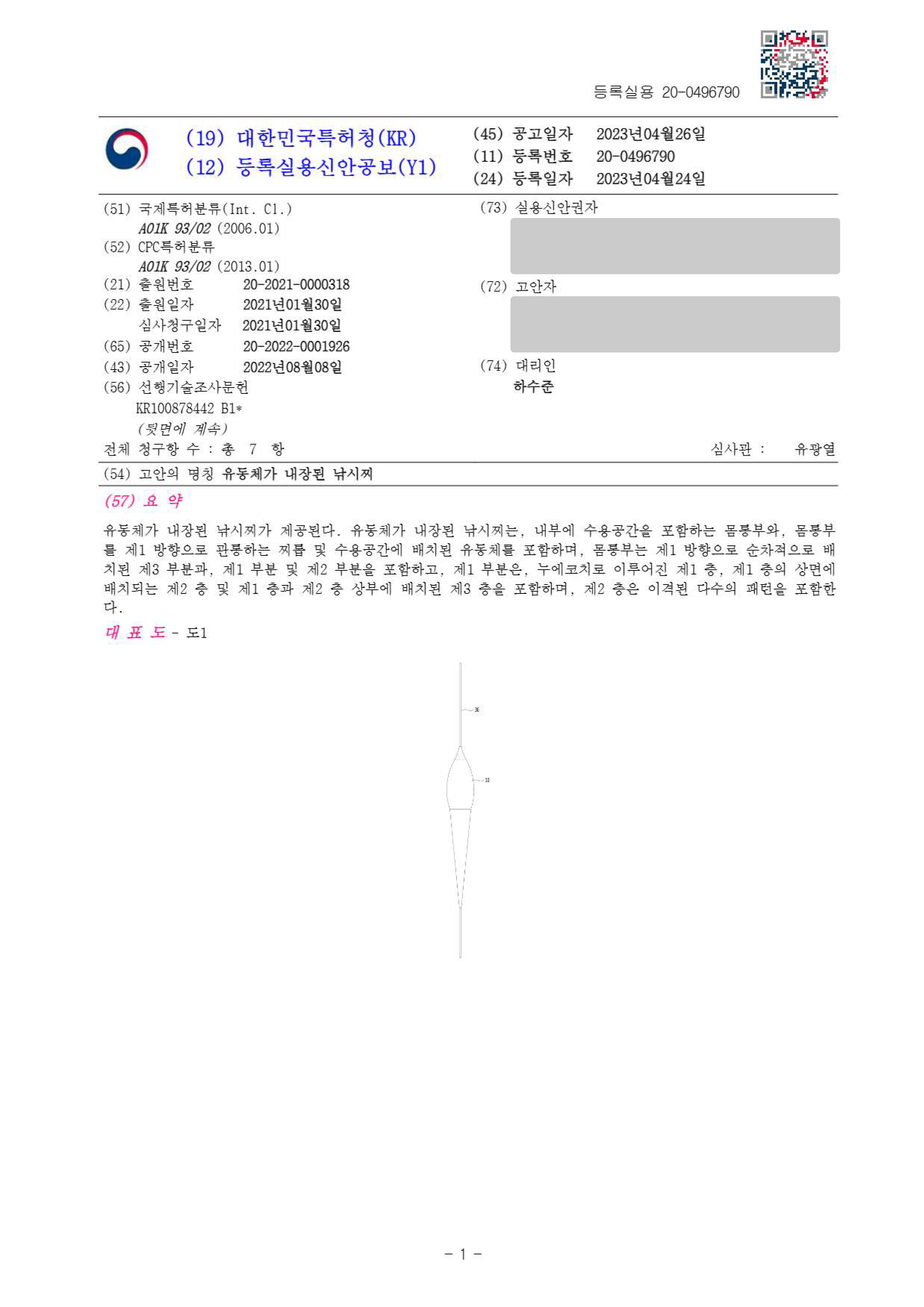 하앤유특허법률사무소를 통해 출원 등록된 낚시용품 등록사례입니다.