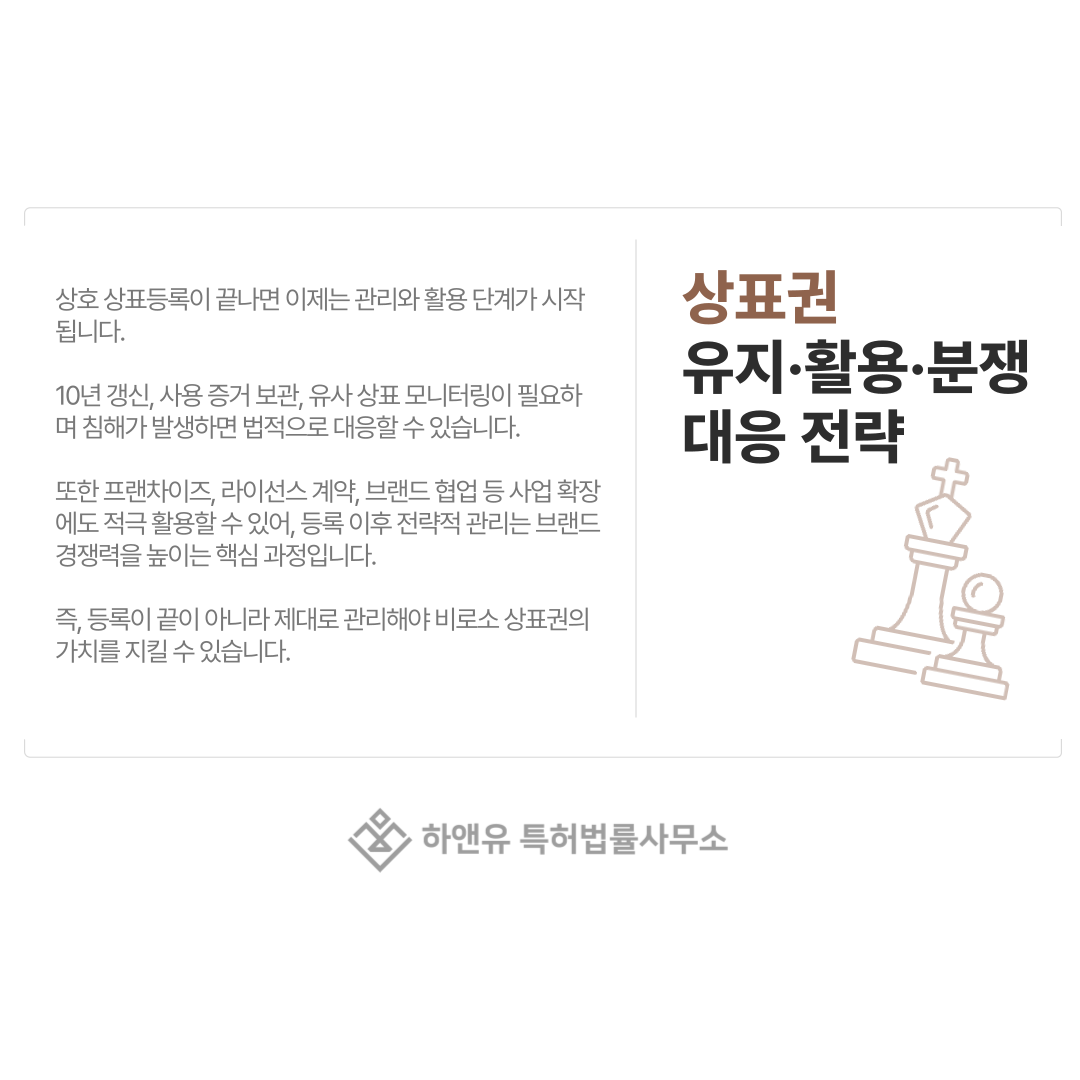 또한 상표는 등록이 끝이 아니라 이후 운영과 관리가 매우 중요합니다.