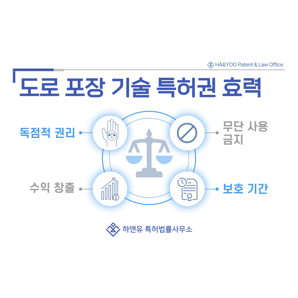 도로, 포장, 터널, 포설, 다짐, 세그먼트 라이닝 시공 기술이 특허로 등록되면 발명자는 해당 기술을 독점적으로 사용할 수 있는 권리를 갖게 됩니다.