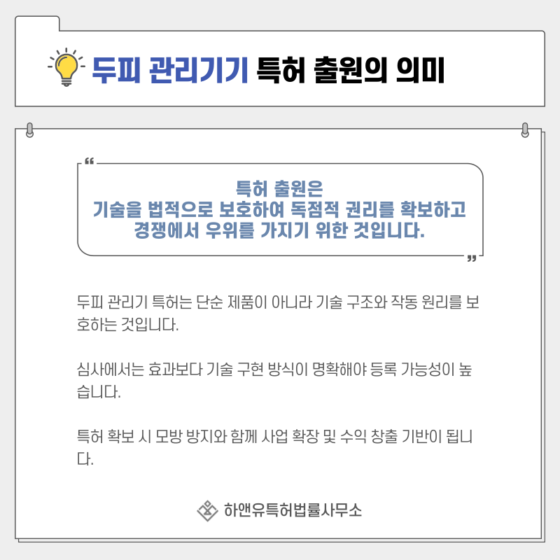 등록된 두피 관리기 기술은 법적으로 보호되며 타인의 무단 사용을 제한할 수 있습니다.