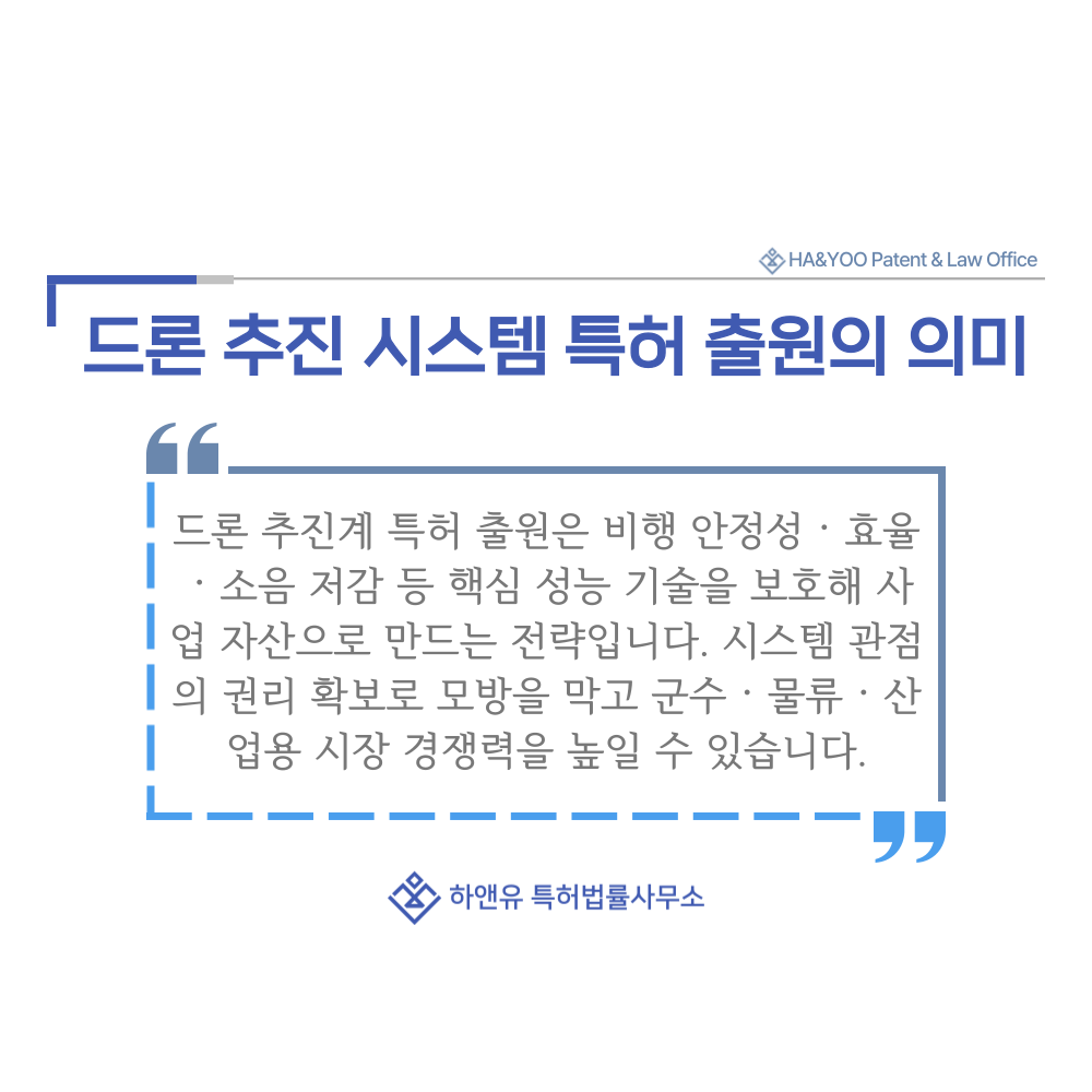 결국 추진계 특허는 드론 성능을 지키고 사업 확장을 뒷받침하는 핵심 전략입니다.