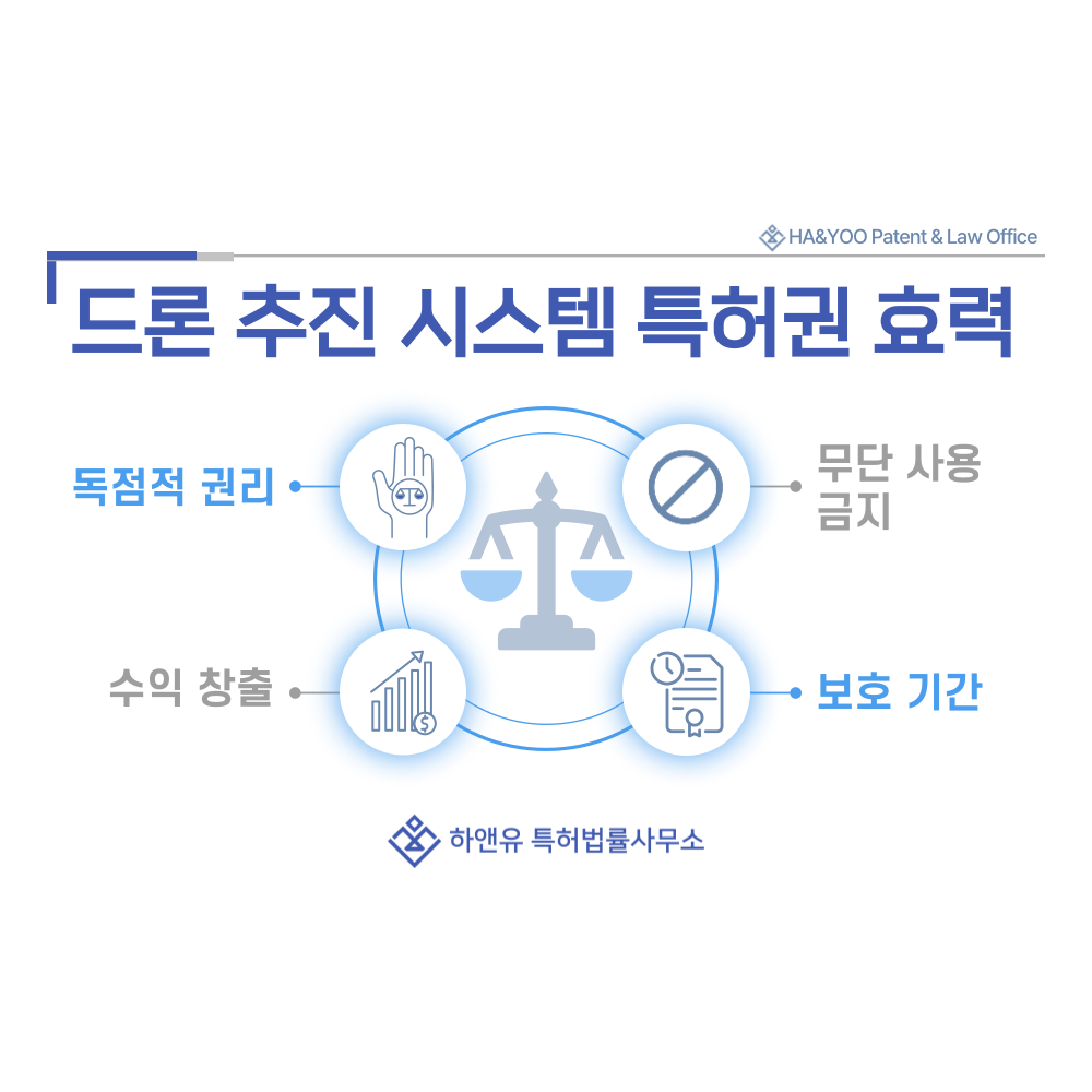 드론 추진계, 모터, 프로펠러, 전자변속기, 디스크 로딩 기술이 특허로 등록되면 해당 기술을 독점적으로 사용할 수 있는 권리가 발생합니다.