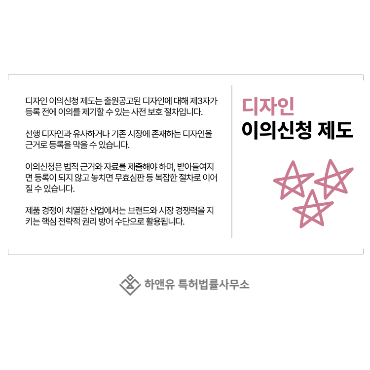 #디자인이의신청 #디자인이의신청제도 #디자인출원공고 #유사디자인 #디자인권리보호 #디자인분쟁 #지식재산처 #디자인등록거절 #지식재산권 #해외디자인출원 #디자인 #디자인출원 #디자인등록 #디자인특허 #디자인권 #DesignPatent #DesignRegistration #Designapplication #특허사무소 #특허법률사무소 #하앤유특허법률사무소