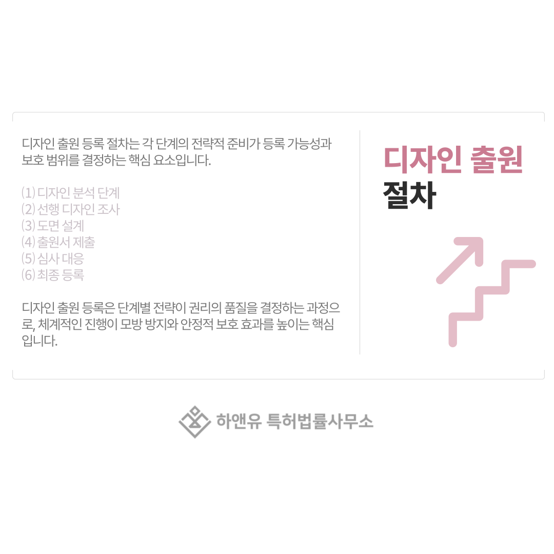 디자인 출원 등록 절차는 각 단계마다 등록 가능성과 보호 범위가 결정되기 때문에 전략적인 접근이 매우 중요합니다.