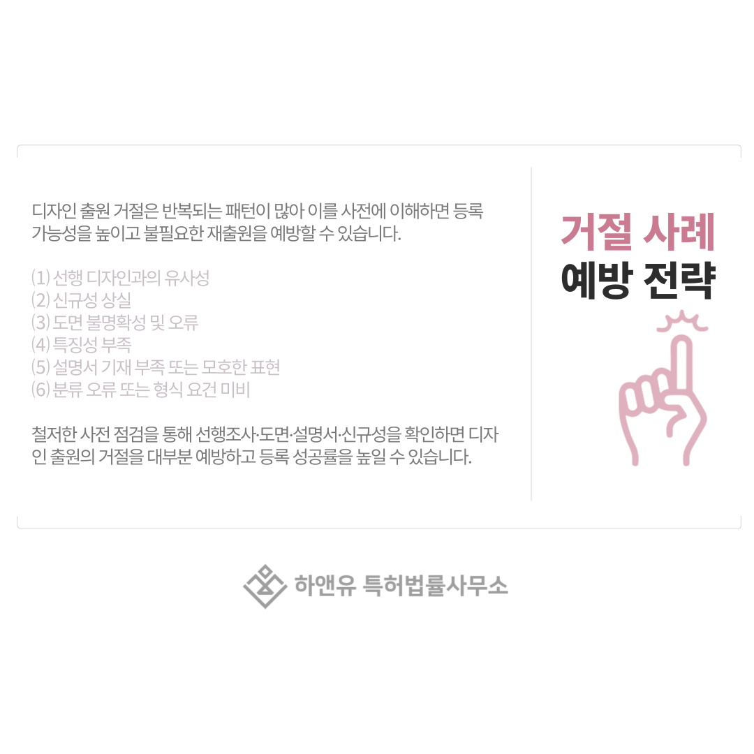 정확한 분석과 전략을 기반으로 준비하면 거절 위험을 줄이고, 넓고 안정적인 디자인권을 확보할 수 있습니다.