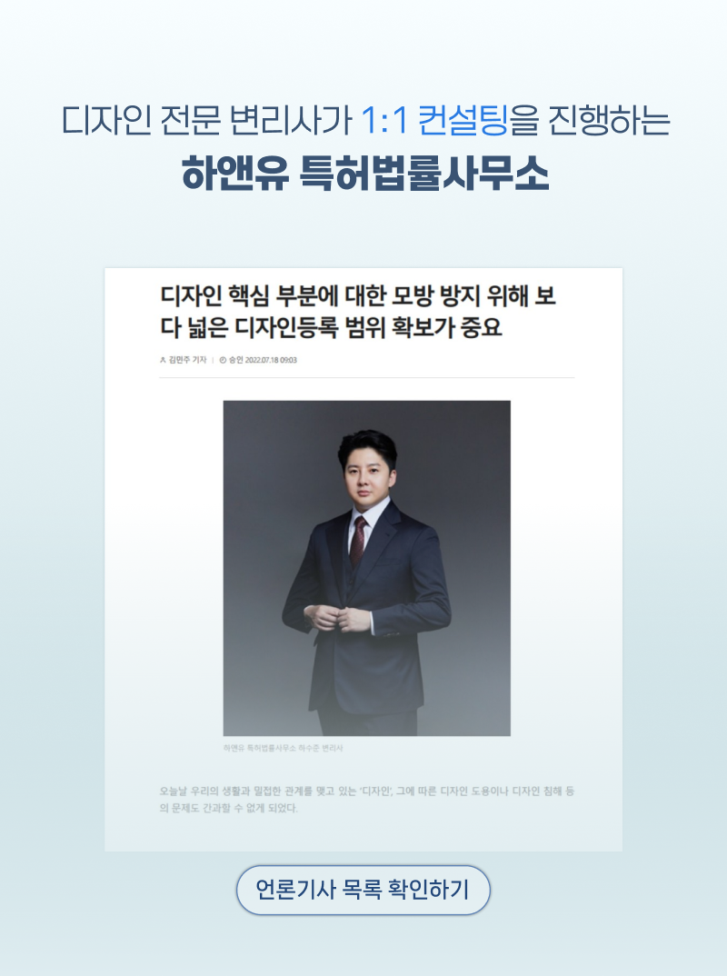 ▼ 하앤유특허법률사무소에서 디자인 전문 변리사 1:1 무료상담 받기 CLICK!! ▼