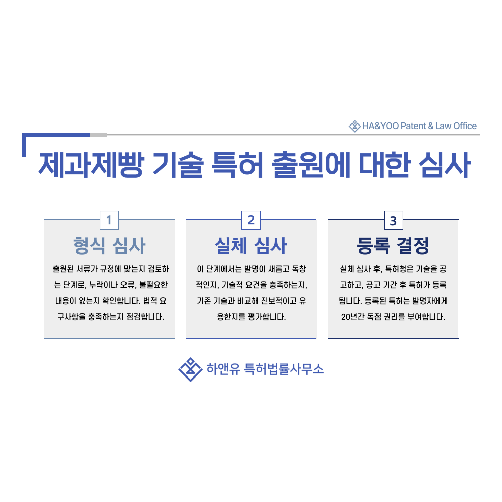 4. 제과제빵 기술, 디저트, 케익, 베이커리, 과자 특허 출원 및 등록 절차