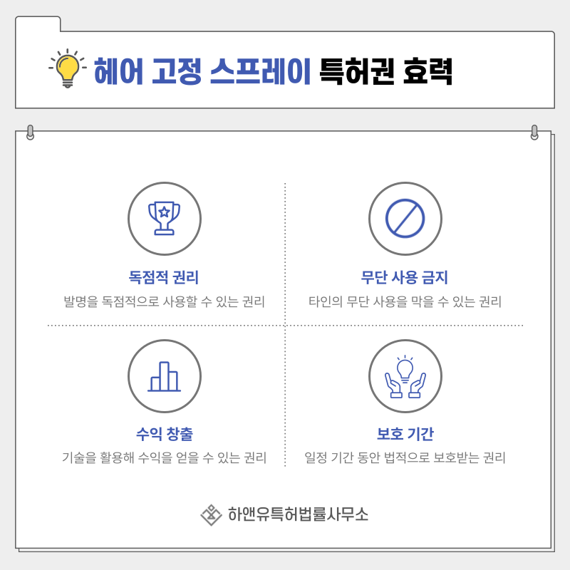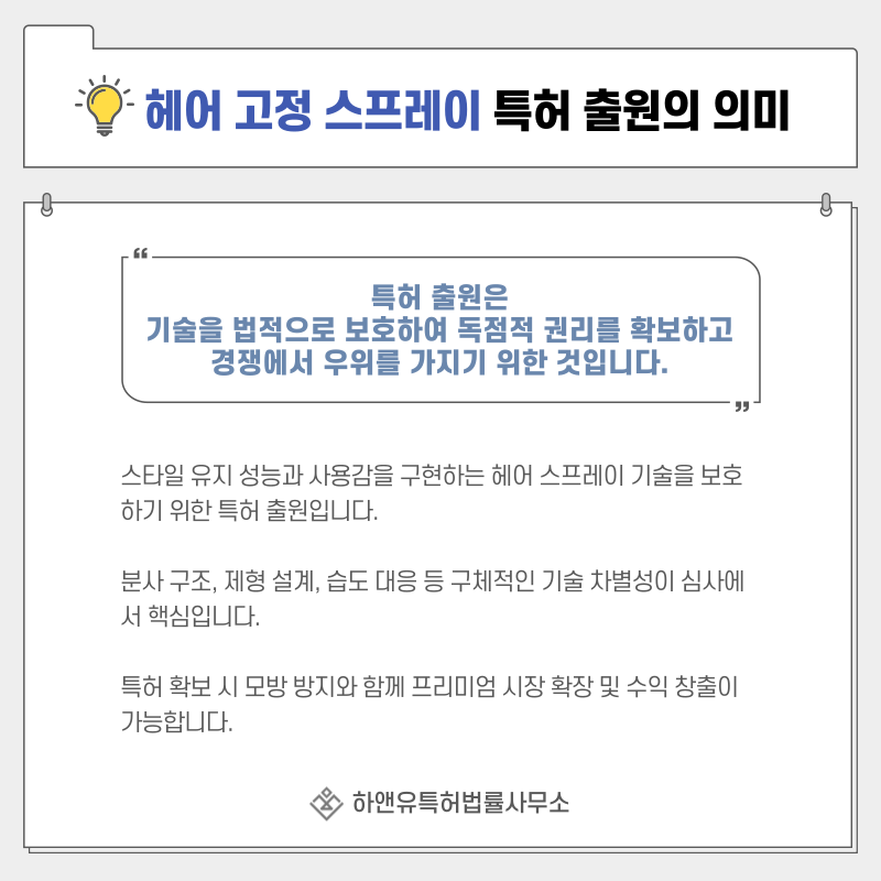 단순한 헤어 스타일링 제품 보호가 아니라 스타일 유지 성능과 사용감을 구현하는 기술을 권리로 확보하는 과정입니다.