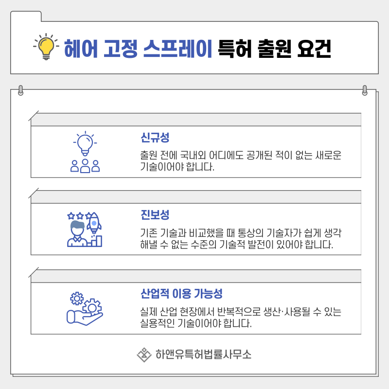 3. 헤어 고정 스프레이, 마이크로미스트, 안티휴미디티, 프리즈컨트롤, 논스티키, UV 프로텍션, 비건 스프레이 특허 출원 및 등록 요건