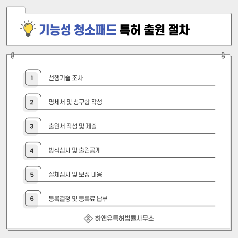4. 기능성 청소패드, 마이크로화이버패드, 재사용청소패드, 미세먼지포집섬유, 표면 손상 저감 패드 특허 출원 및 등록 절차