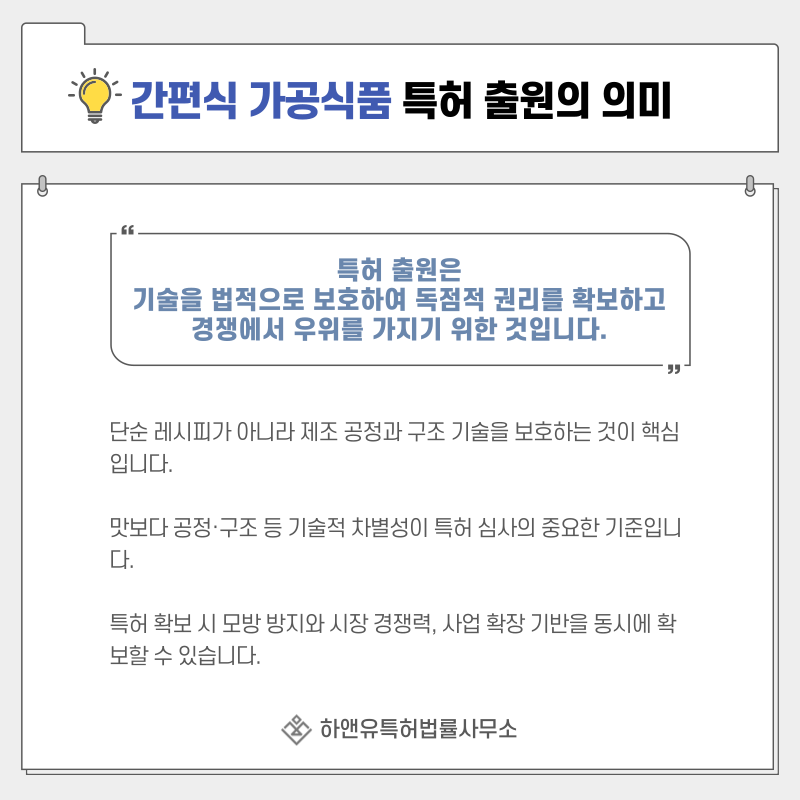 특히 식품 산업처럼 모방이 빠른 시장에서는 사전에 권리를 확보해 분쟁을 예방하고