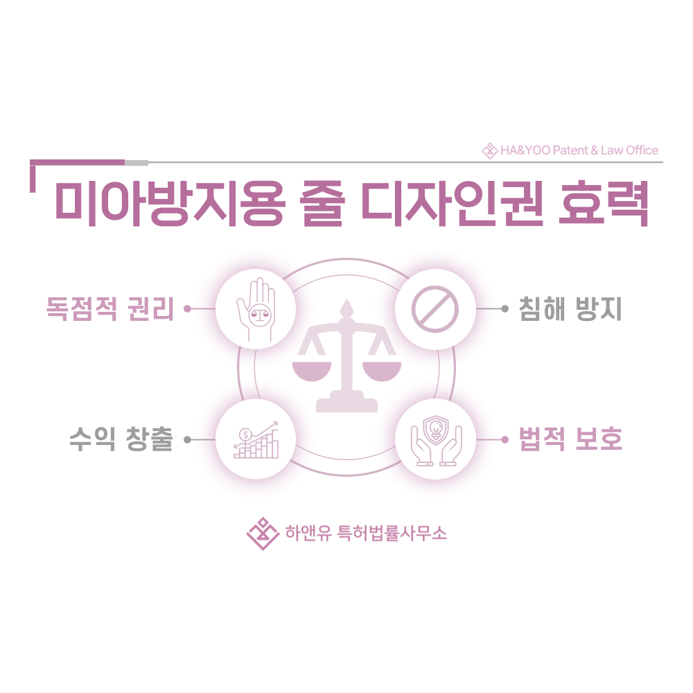 등록료 납부가 완료되면 공식적으로 디자인권이 발생하고, 해당 미아방지용 줄 디자인은 법적 보호를 받게 됩니다. 이때부터 권리자는 경쟁사의 모방을 제재할 수 있고, 라이선스나 양도를 통해 권리를 활용할 수도 있습니다. 즉, 단순한 출원을 넘어 실제 권리 보호와 상업적 가치 창출이 시작되는 단계라고 할 수 있습니다.